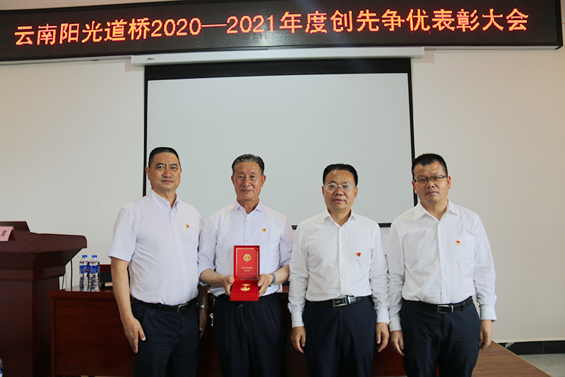 参观结束后,全体人员在柯渡红色驿栈会议室观看革命历史纪录片,通过追忆革命历史,全体人员切身感受到革命先烈不惧艰难、勇于献身的精神,给予大家极大的鼓舞。随后,举行了“云南阳光道桥2020-2021年度创先争优表彰大会”,向“光荣在党50年”老党员代表颁发了纪念章,表彰了三个先进党支部及31名优秀共产党员。随后,组织了气氛活跃的现场抢答党史知识竞赛,党员同志们通过一段时间的党史学习和积累,对党的发展历程、革命事件节点、党的重要决策等全方面的党史知识有了充分的认知,在竞赛过程中踊跃参与、积极抢答,掀起一个又一个竞赛高潮。整个活动在党员同志们既严谨又愉快的相互学习、竞赛氛围中圆满结束!